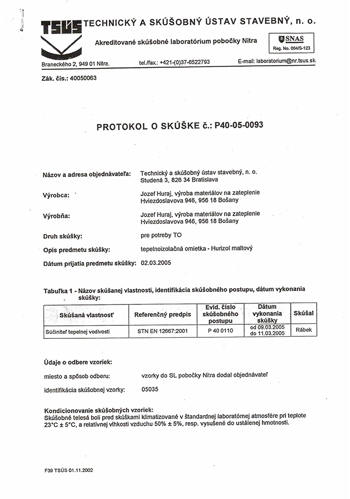 Spoločnosť Výskum a inovácie s. r. o. vyrába jedinečné stavebné materiály – tepelnoizolačné omietky HurajIzol – podľa úžitkového vzoru (patentu) zakladateľa podniku Jozefa Huraja z roku 2005 s využitím drveného polystyrénu.  Naše malty sú zmesou polystyrénu a doplňujúcich prísad, ktoré im dodávajú stálosť, pevnosť a priedušnosť podľa presne stanovenej receptúry pre daný druh malty.
